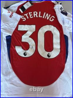 The signed Raheem Sterling shirt is a prized piece for any football fan, particularly those who support Premiership players and clubs. This authentic shirt, certified through private signings, bears the signature of the talented footballer, making it a unique and valuable collectible item. Perfect for football enthusiasts looking to add a personal touch to their sports memorabilia collection, this signed shirt is a must-have for fans of the sport.